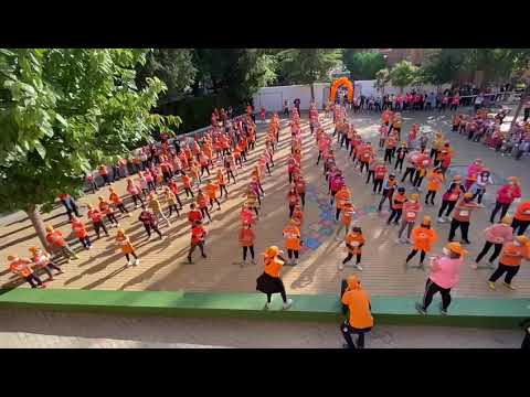 Este curso hemos vuelto a participar en la carrera solidaria contra la leucemia infantil de Uno Entre Cien Mil y nuestra colaboración con Afanion. Como cada año, al finalizar hemos cantado y bailado todo el cole junto. Esta vez ha sido con el tema "Eso Que Tú Me Das" del cantante y compositor Pau Donés del grupo Jarabe de Palo.